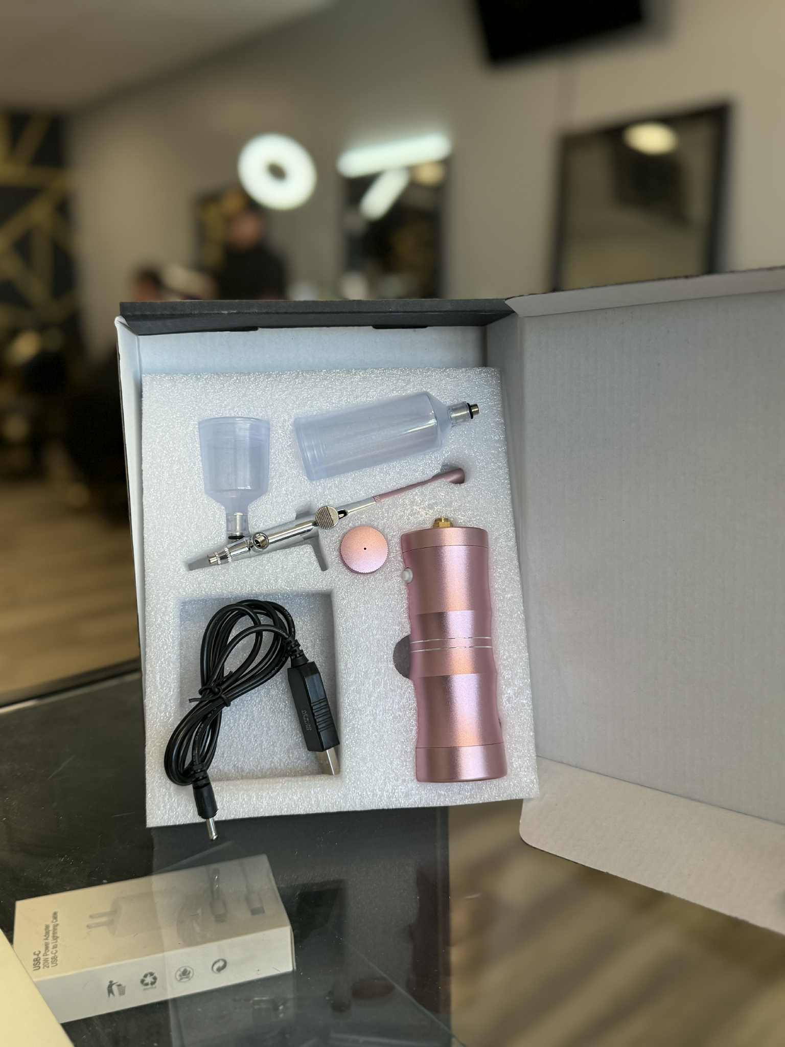 Comprehensive Kit: Includes an airbrush, color cup, cleaning cup, and USB charging cable for complete convenience.